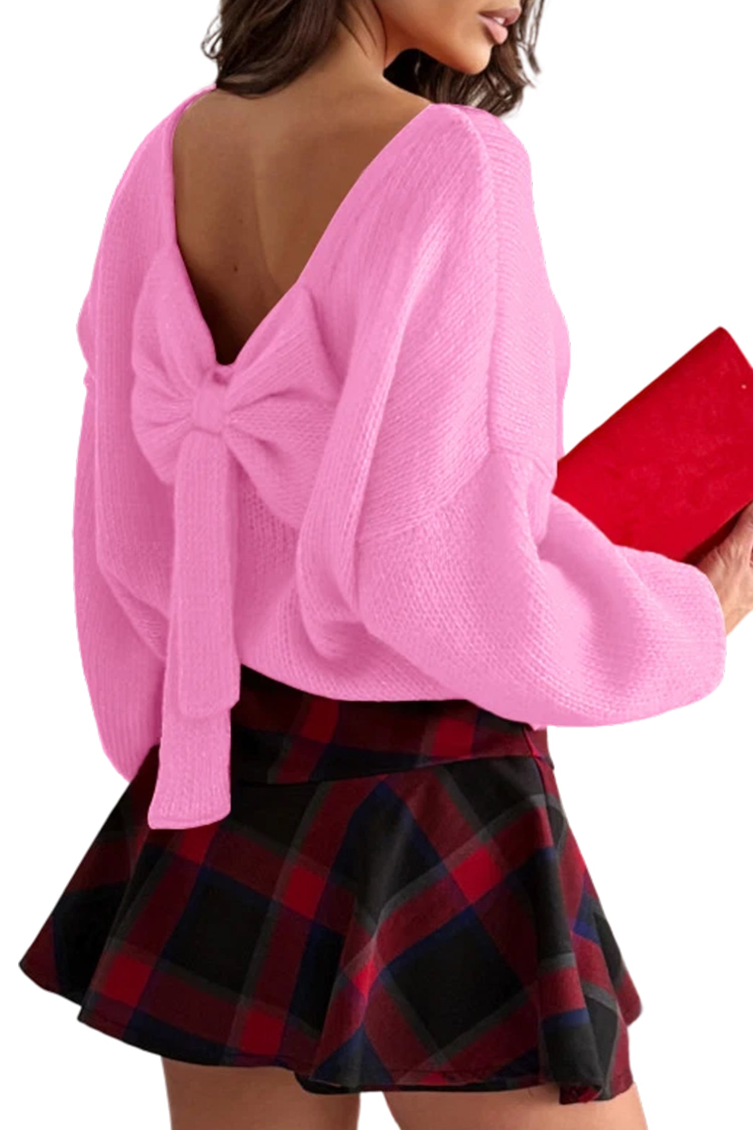 Bright Green Bow Backless Bubble Sleeve Sweater