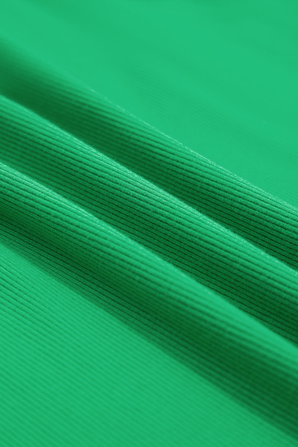 Bright Green Pearl Beaded Puff Sleeve Ribbed Top