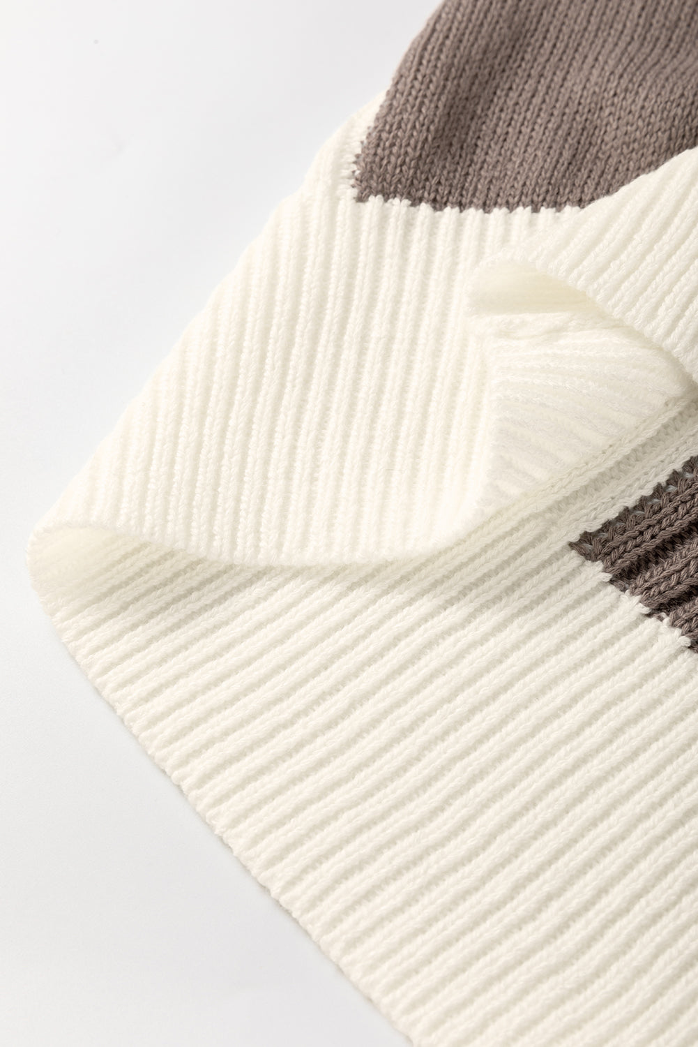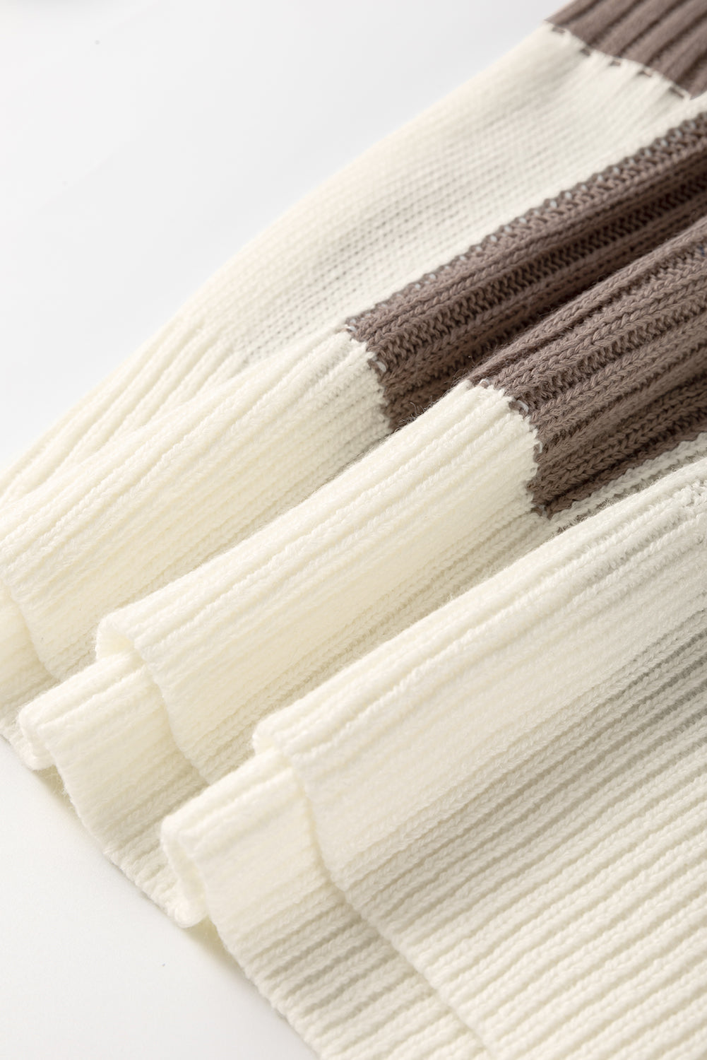 Khaki Checkered Color Block Crew Neck Short Sleeve Sweater