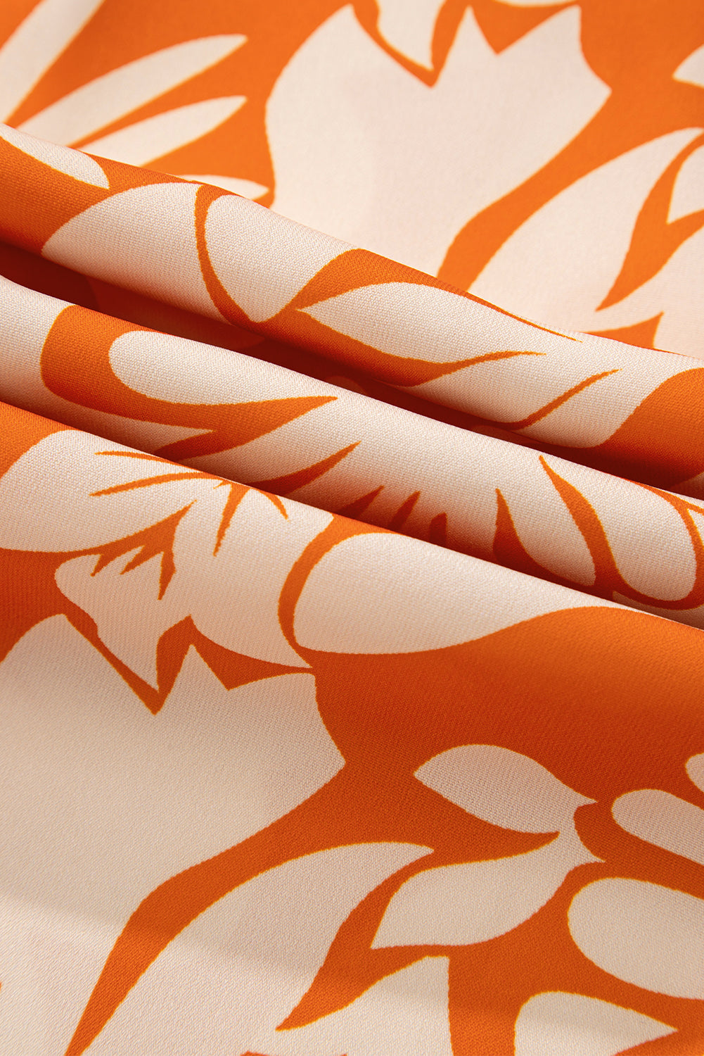 Orange Floral Print Knotted Backless Long Sleeve Blouse