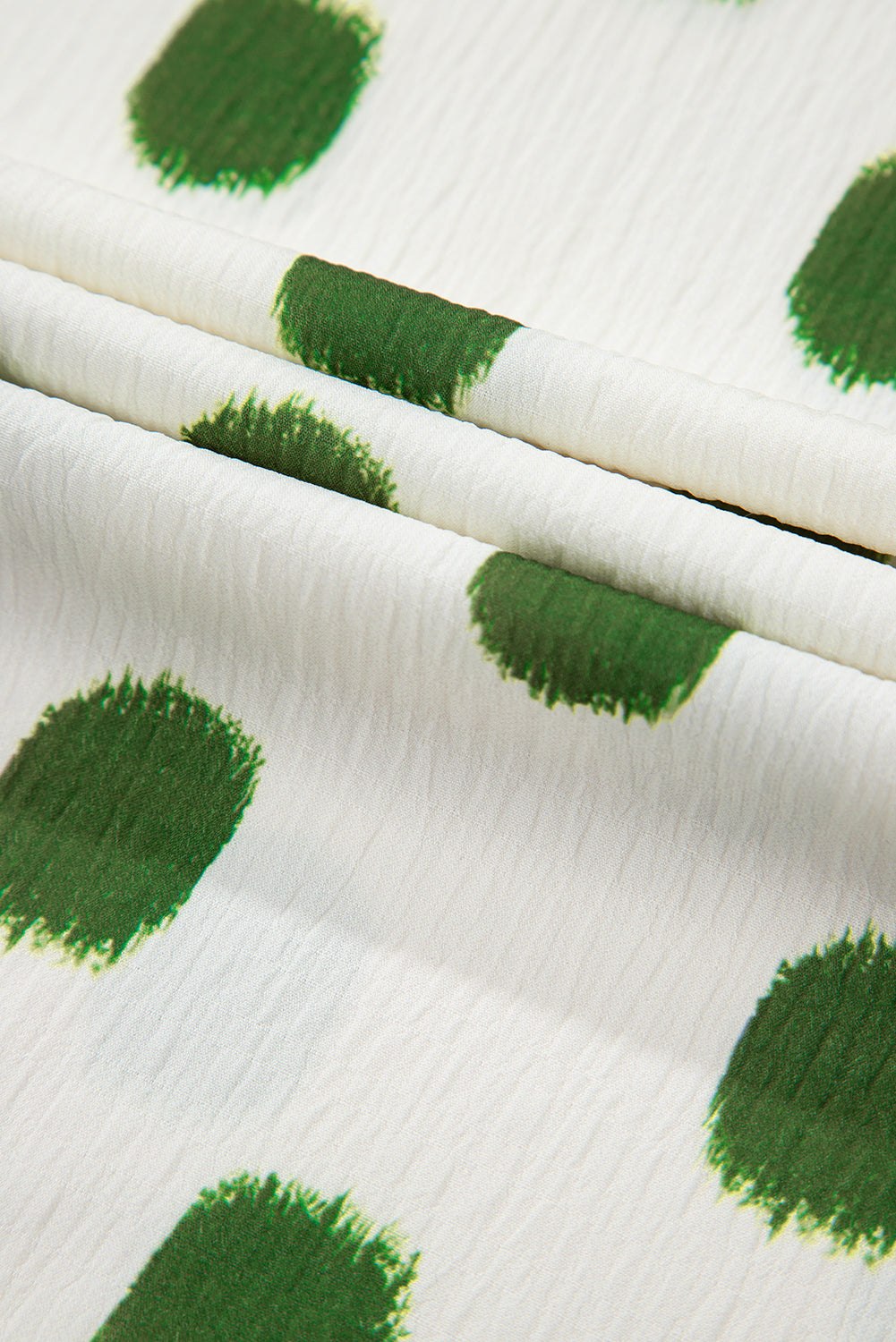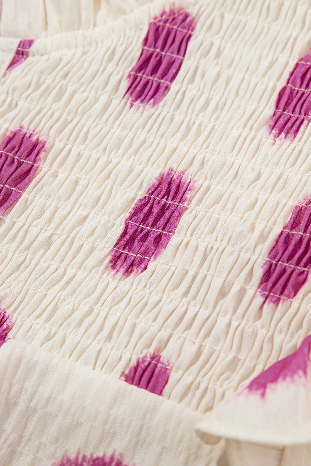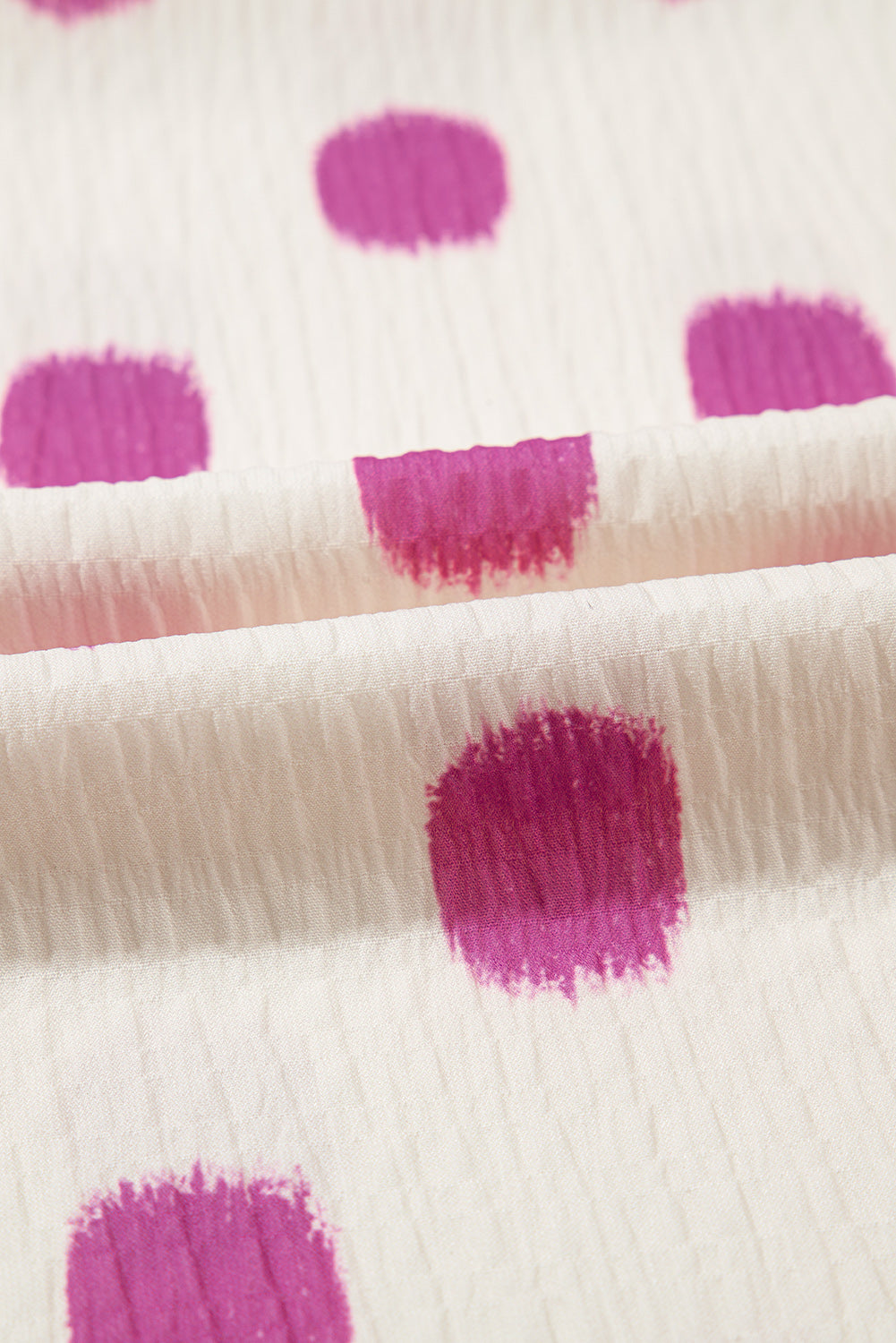Rose Polka Dot Print Shirred Notched Neck Puff Sleeve Blouse
